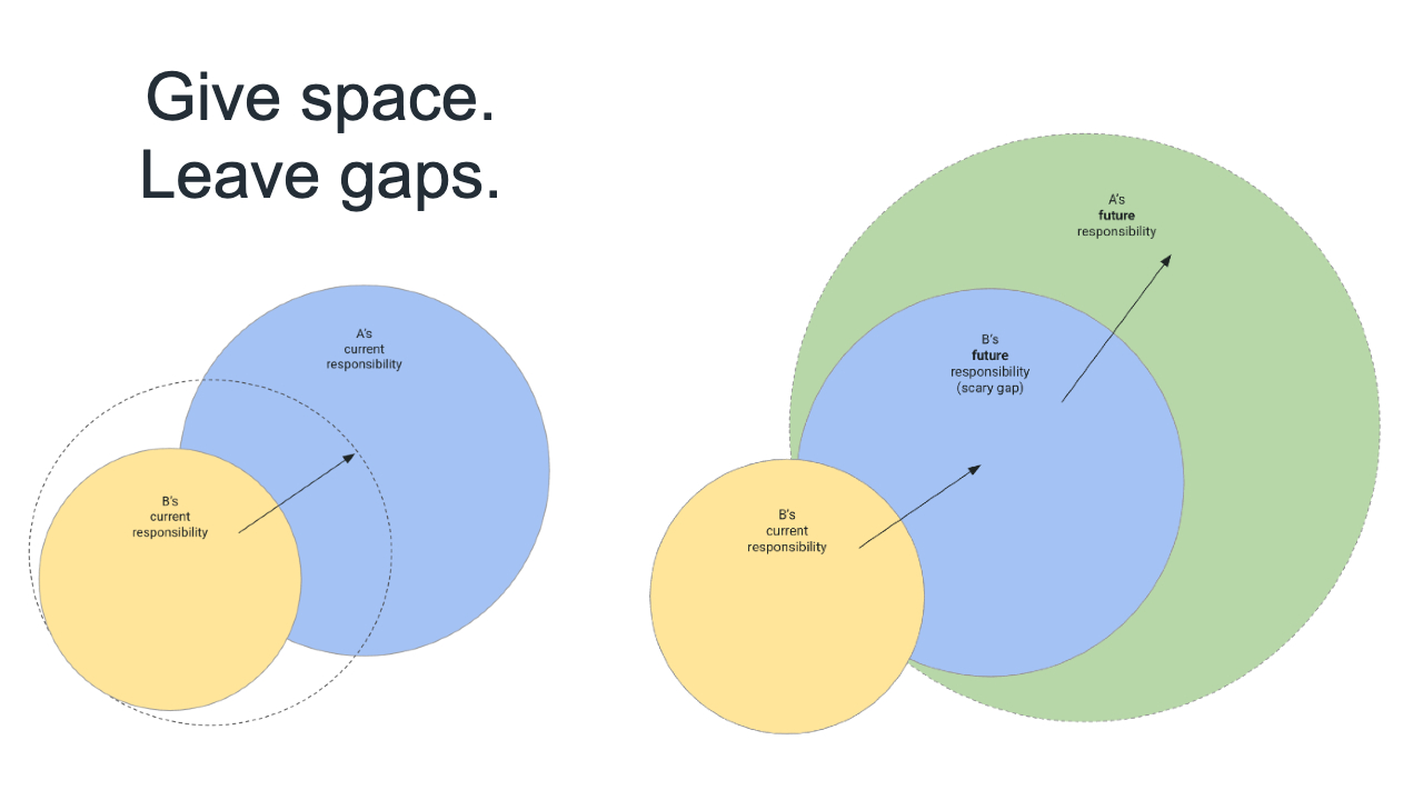You don’t just block others. You end up blocking yourself. If you don’t leave some space for others to take over what you’ve already mastered, you don’t create room for yourself to master new skills.
