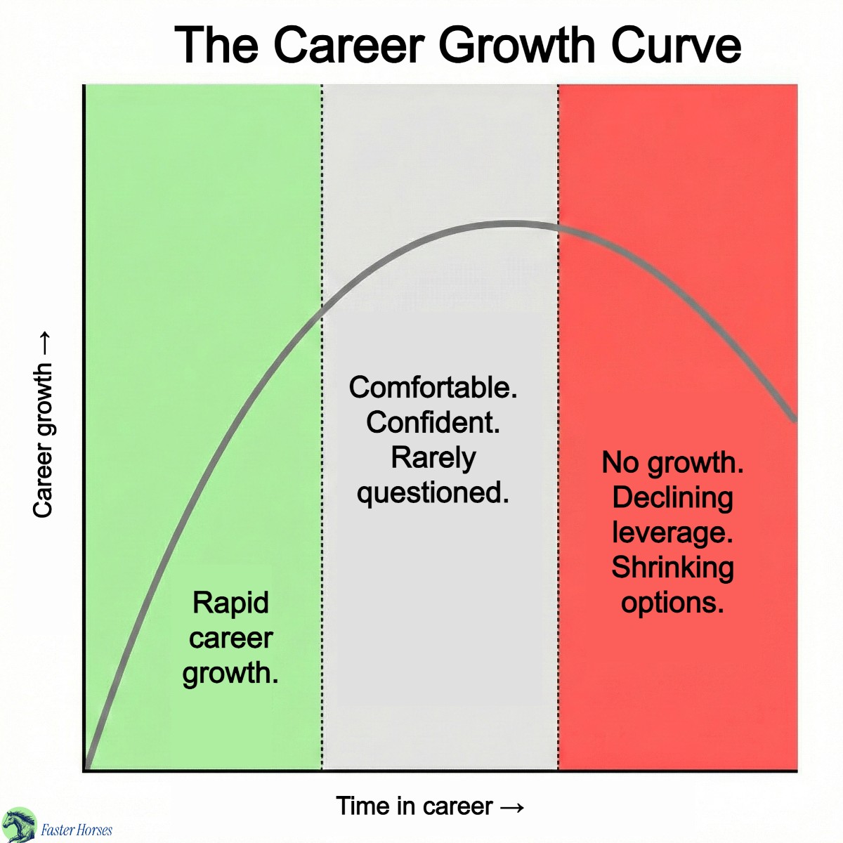 The most dangerous place in your career is not failure. It’s not the competitive bottom where you’re fighting for growth with all the other juniors. It’s actually closer to the top: stable competence without much friction. It’s confidence that has rotted into complacency and eventual decay.